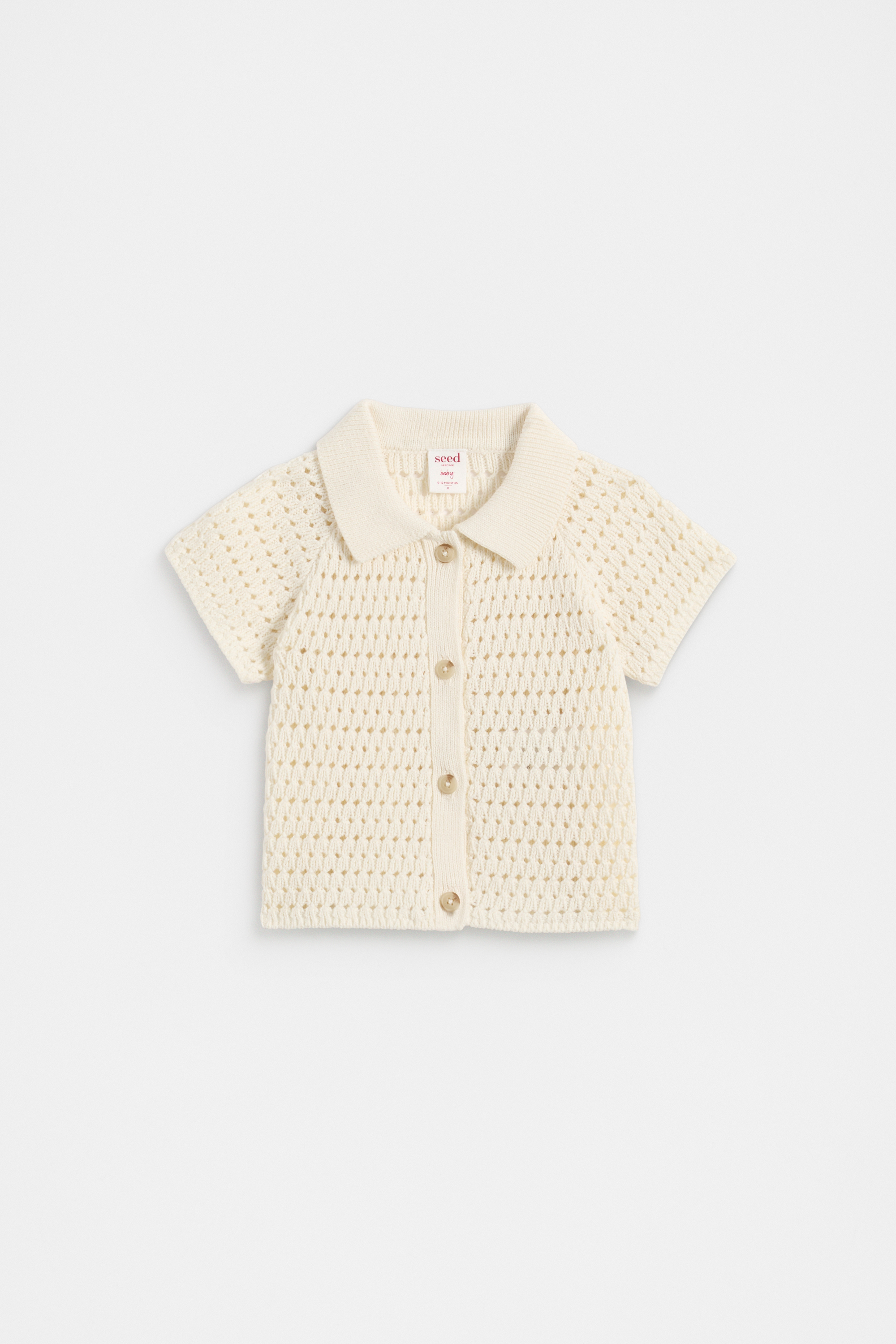 In a sweet textured knit, this shirt features a collar, a button front, short sleeves, and ribbed trims. It's crafted from cotton, and can be paired with the matching knit shorts for an adorable set.