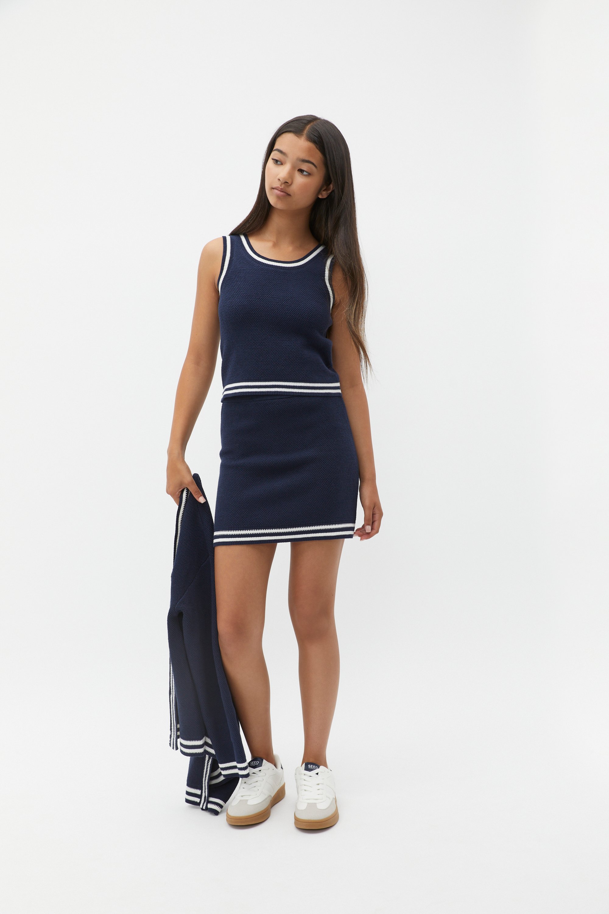 This knit tank is the ideal style for her casual wardrobe update. Crafted in premium cotton, it features a scoop neck, sleeveless shape and contrast trims. It has a ribbed knit finish and a cropped length.
