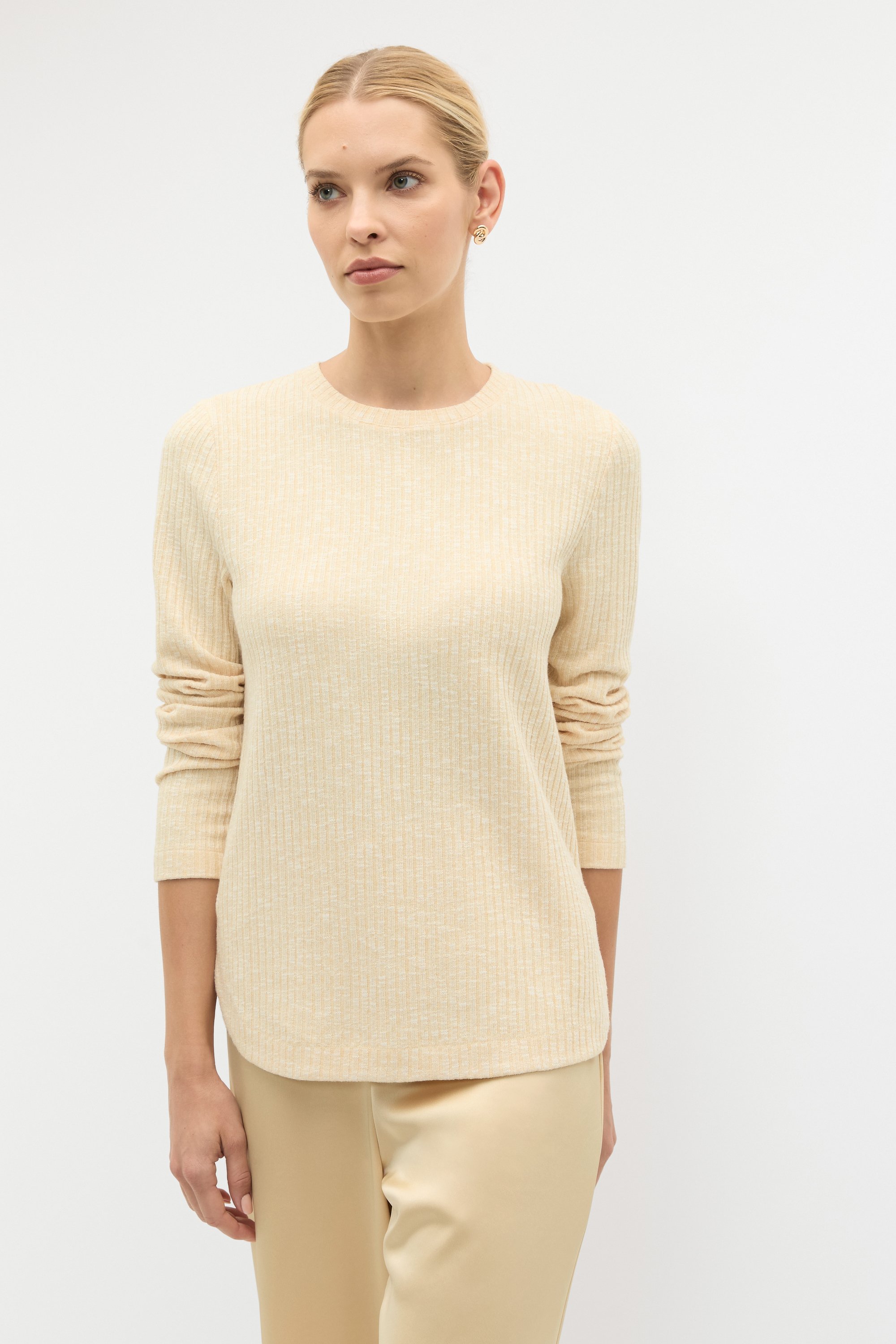 Textured and soft for everyday comfort, this long sleeve top is a wardrobe essential, perfect for layering. It features a round neck, long sleeves, a relaxed fit through the body and has a ribbed finish.