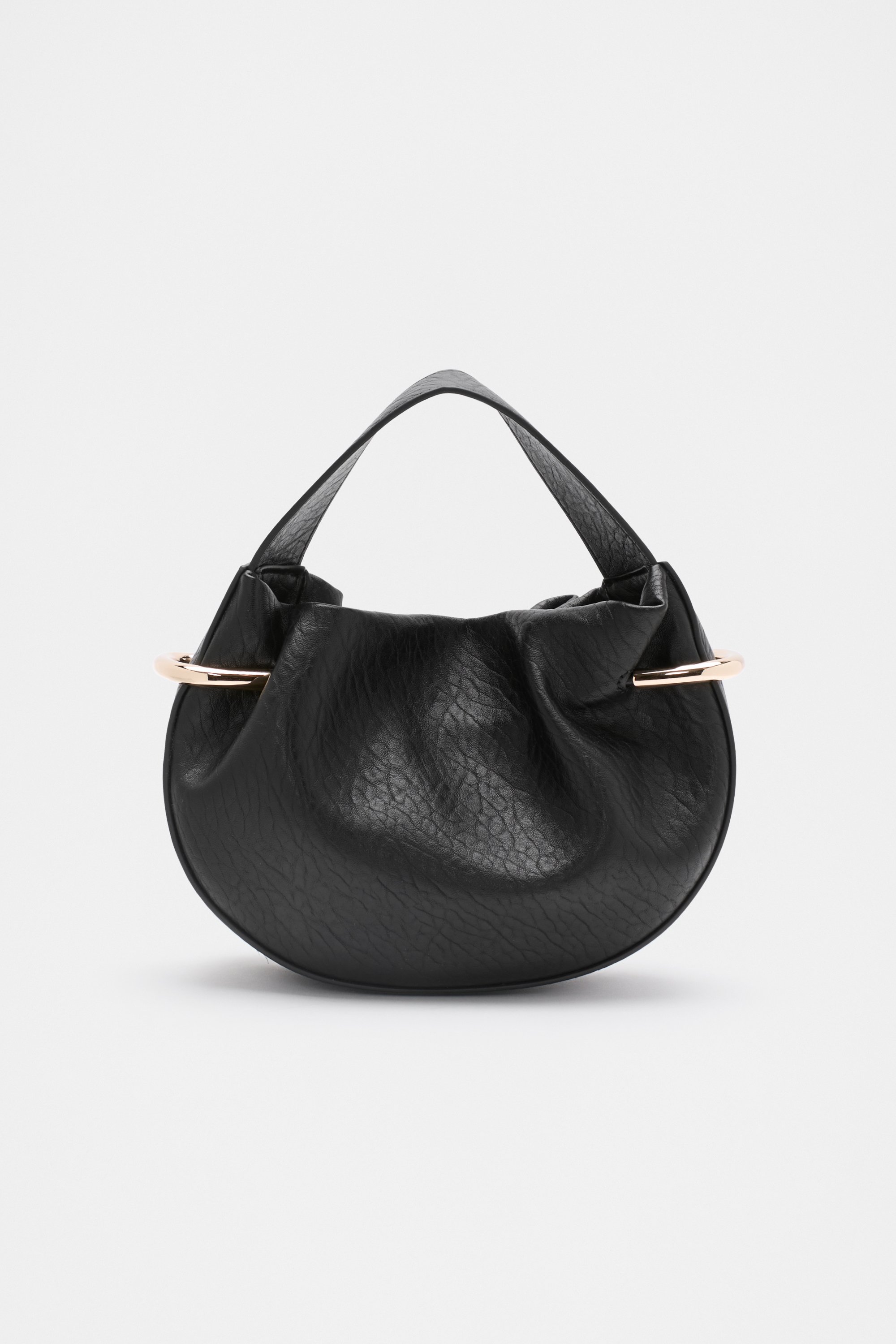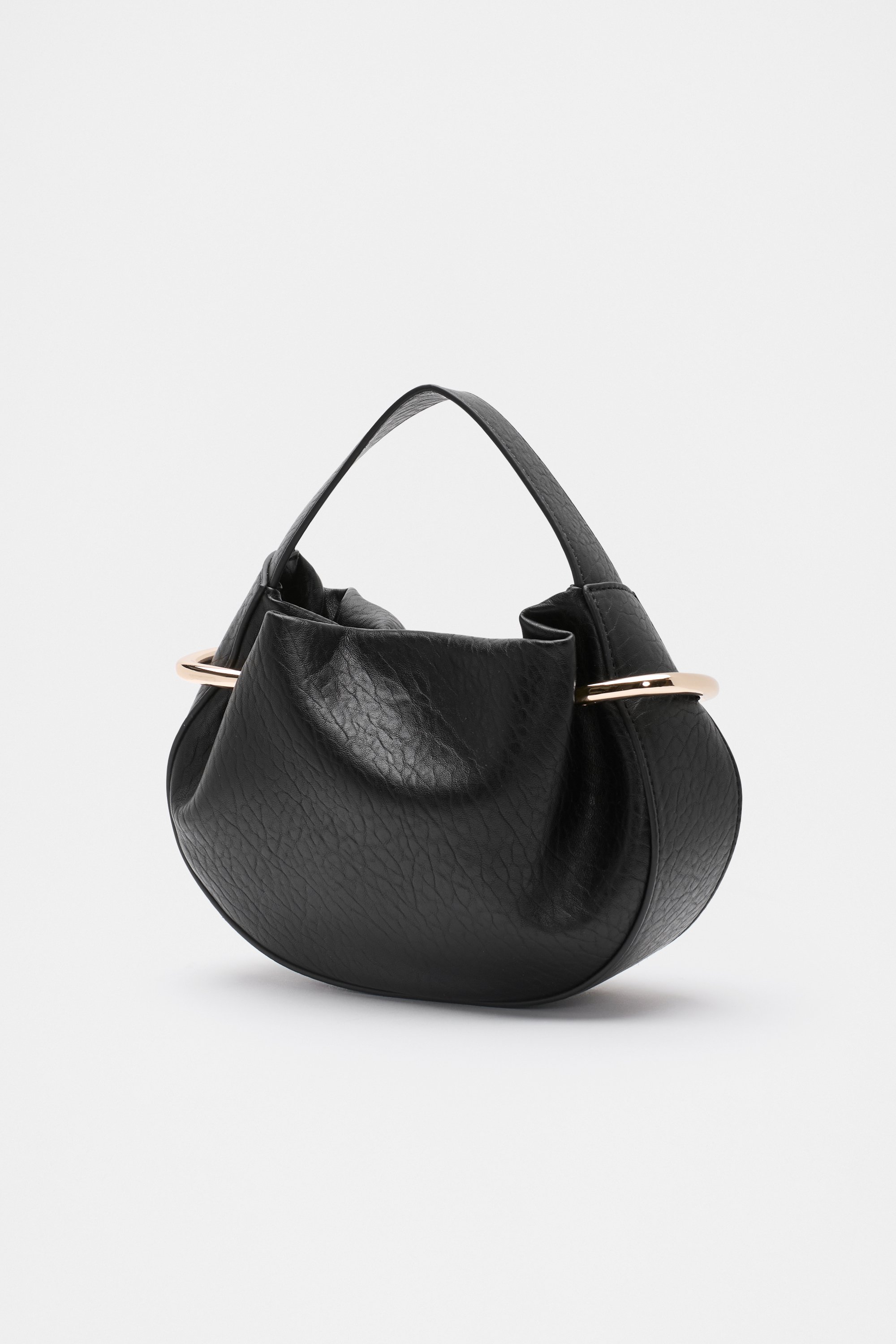 Chic and simple, this mini handbag is ready for your next night out. It features a rouched design with gold hardware details. Style with one of our detachable straps to mix up your look.