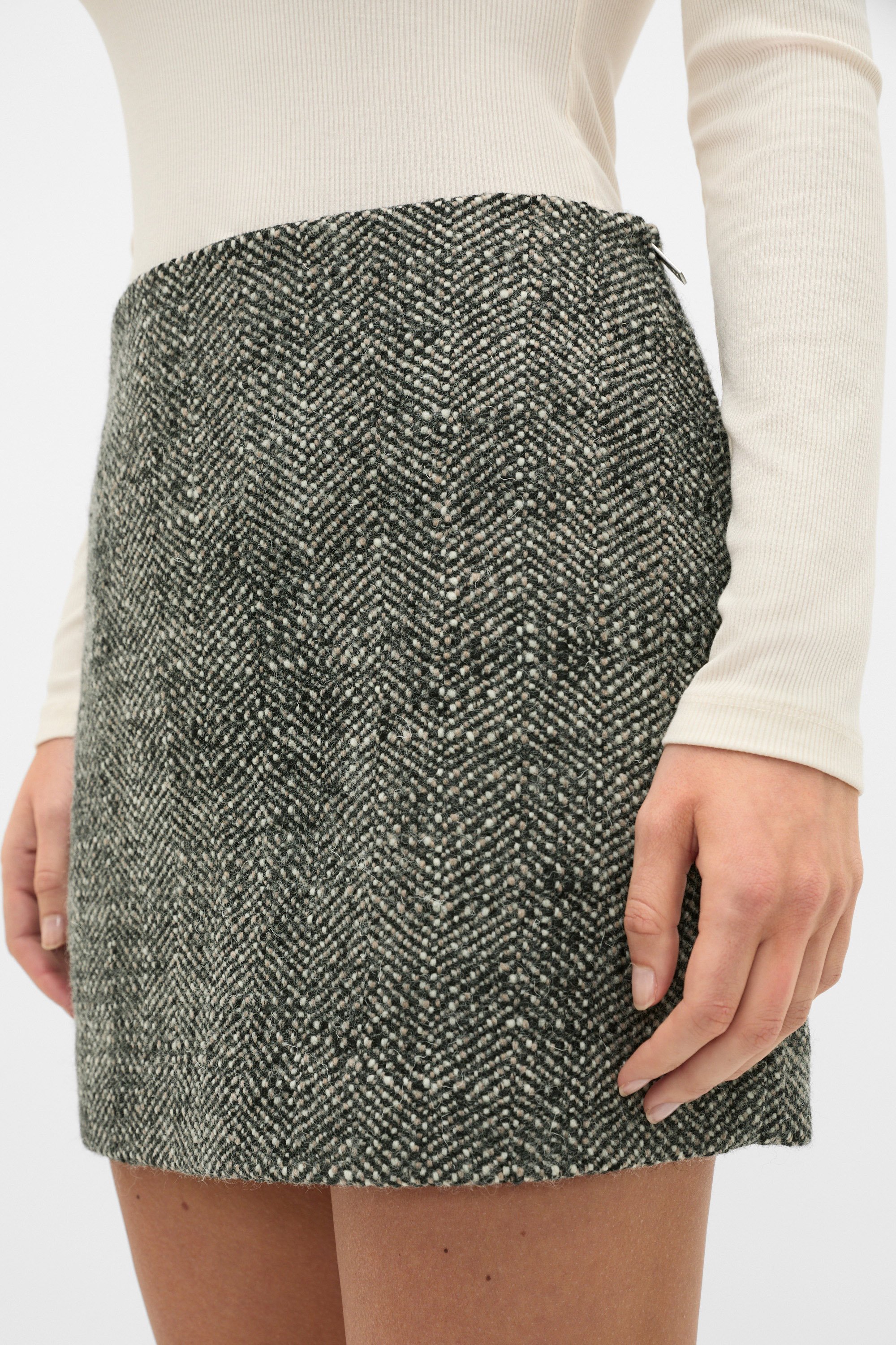 This mini skirt is the perfect winter style, chic and understated with a textured finish. It's fully lined and features a fixed waistband securing with a side zip. Coordinate with the textured jacket for an elevated head-to-toe look.