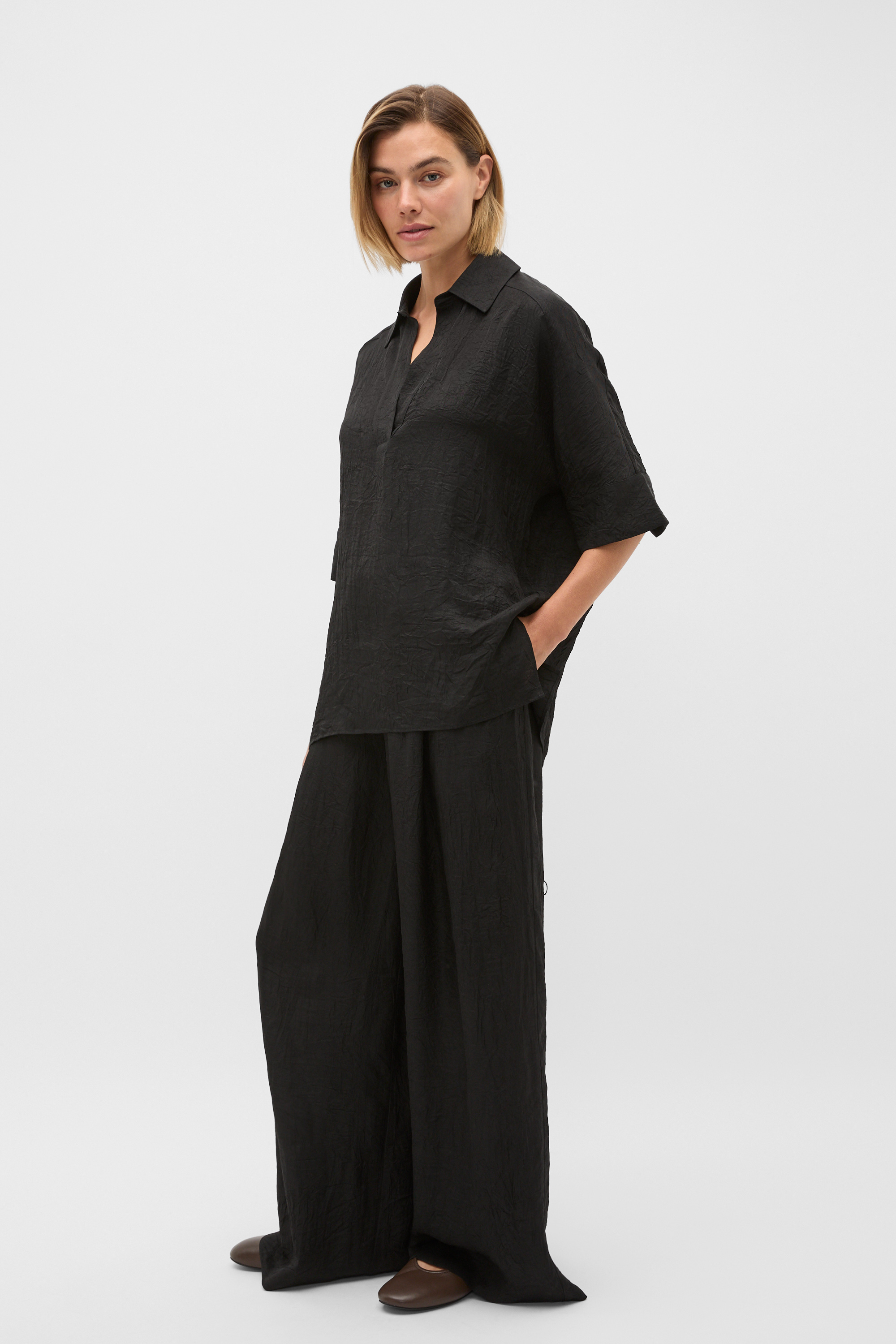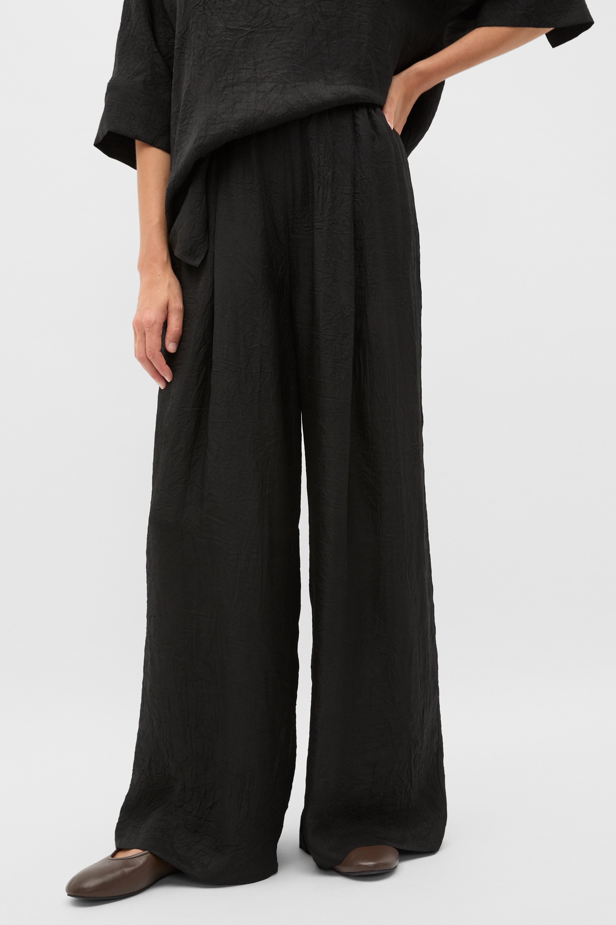 Textured Satin Gathered Pant  Black  hi-res Textured Satin Gathered Pant  Black  hi-res Textured Satin Gathered Pant  Black  hi-res