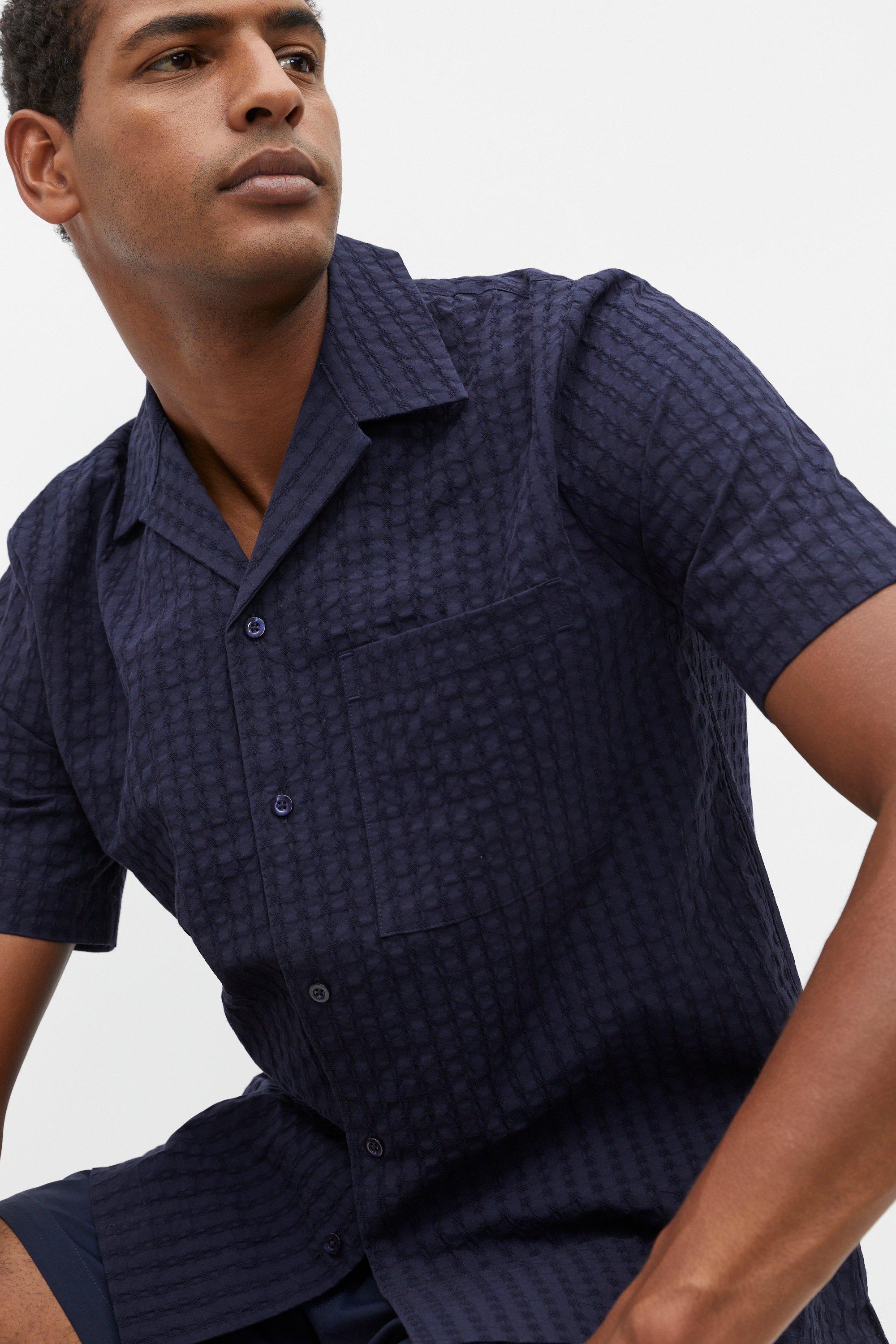 A classic design to elevate his casual summer wardrobe, this shirt is set to be a new favourite. Crafted in a crisp premium cotton, it features a notched collar, short sleeves, a front pocket and a textured finish.