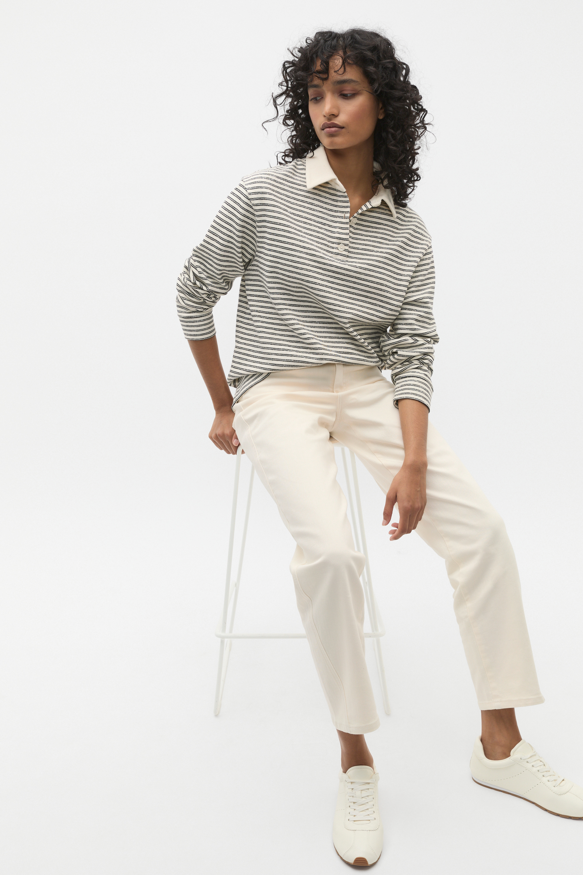 Sporty and chic, this polo adds effortless cool to your new-season styling. Crafted in premium cotton, it has a subtly textured finish and features a polo collar, a drop shoulder, long sleeves and a relaxed fit. It's finished with a classic stripe design.