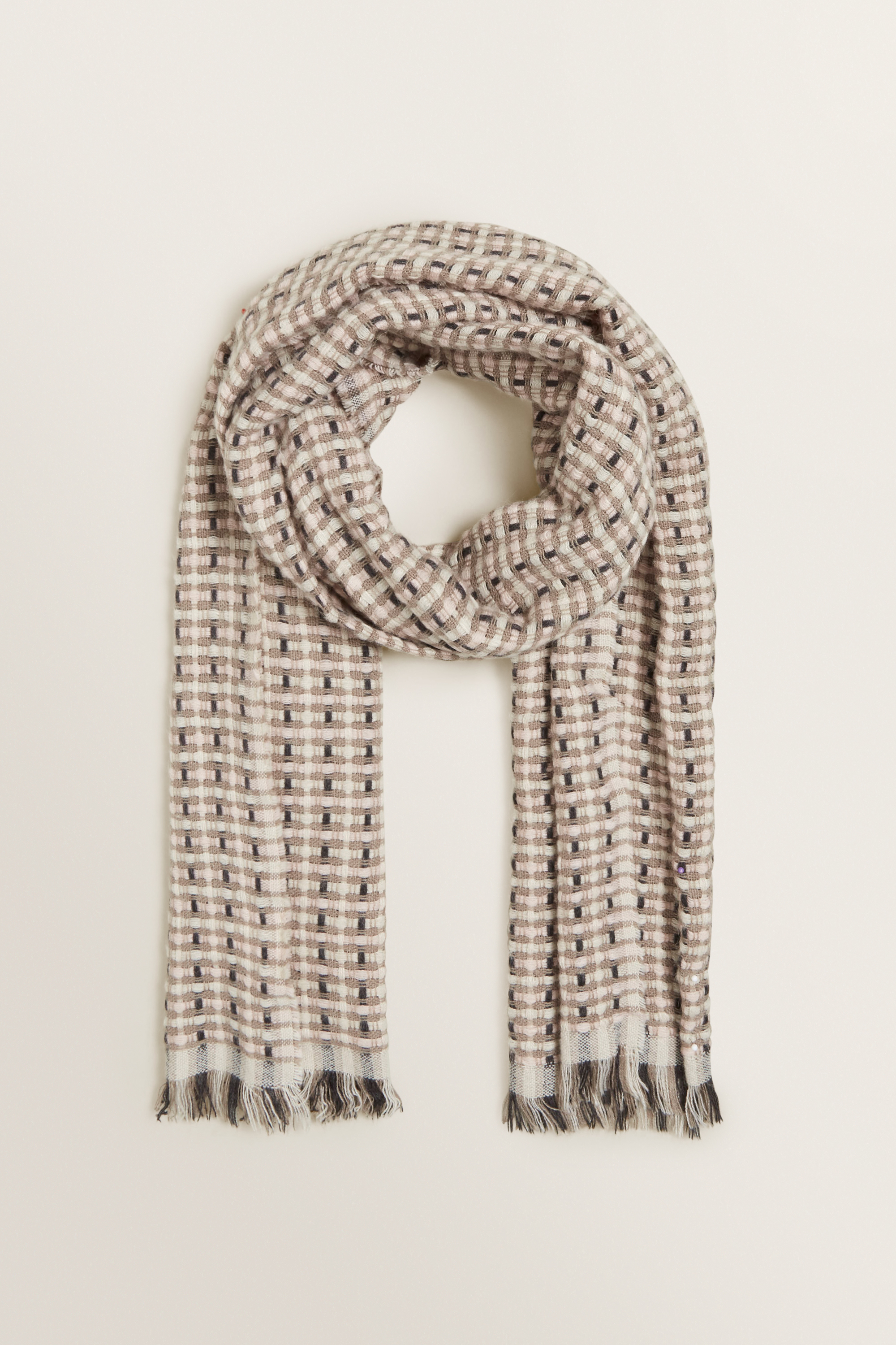 Interlaced with bold threads, this Tonal Weave Scarf features a weighty blend.