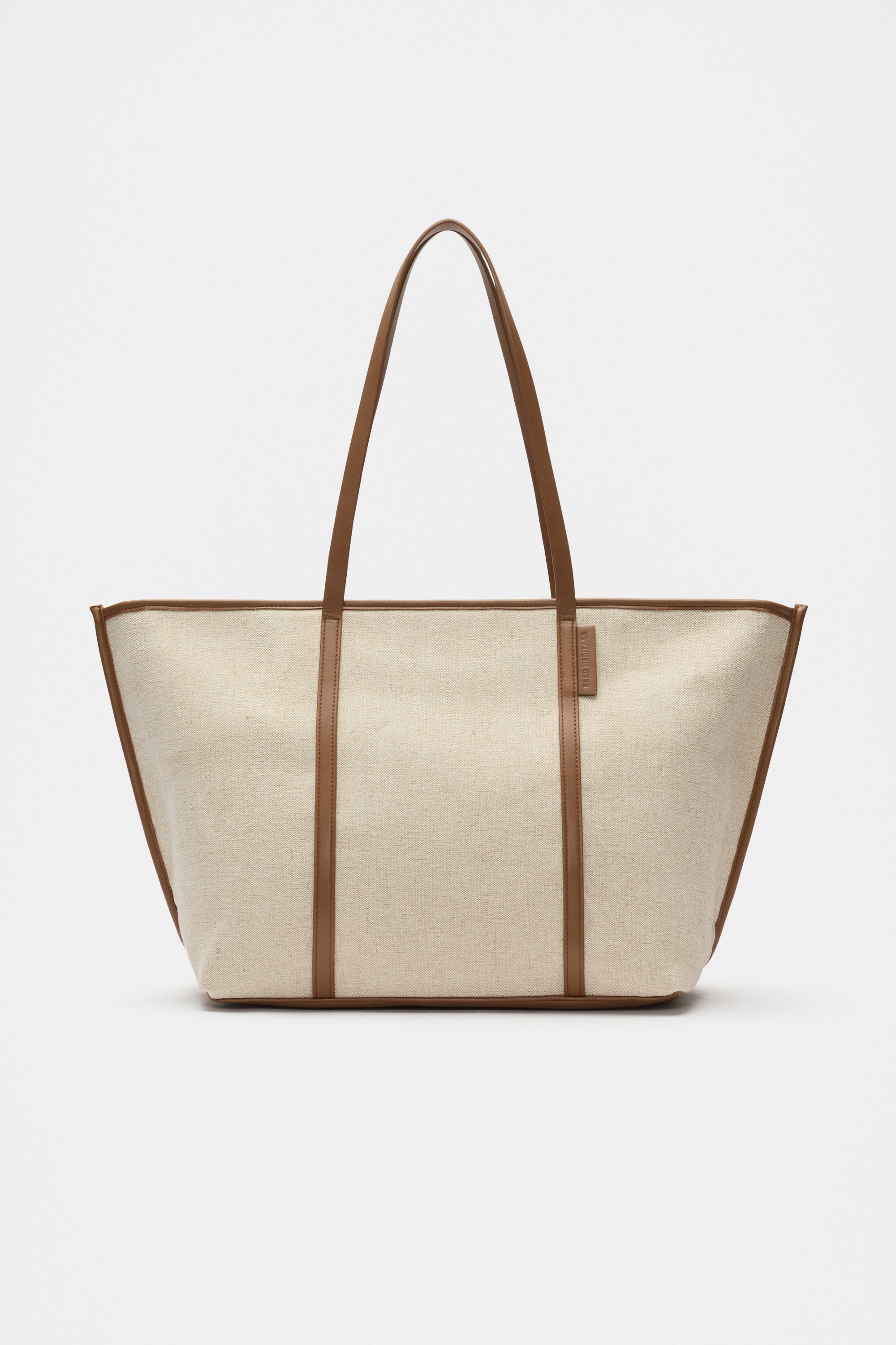 Upgrade your day to day dressing with this chic tote bag, elevated in the details. Crafted with a soft and textured textile, it features a leather-look trim for effortless sophistication. It's also fully lined and has an internal zip pocket and an internal logo patch.
