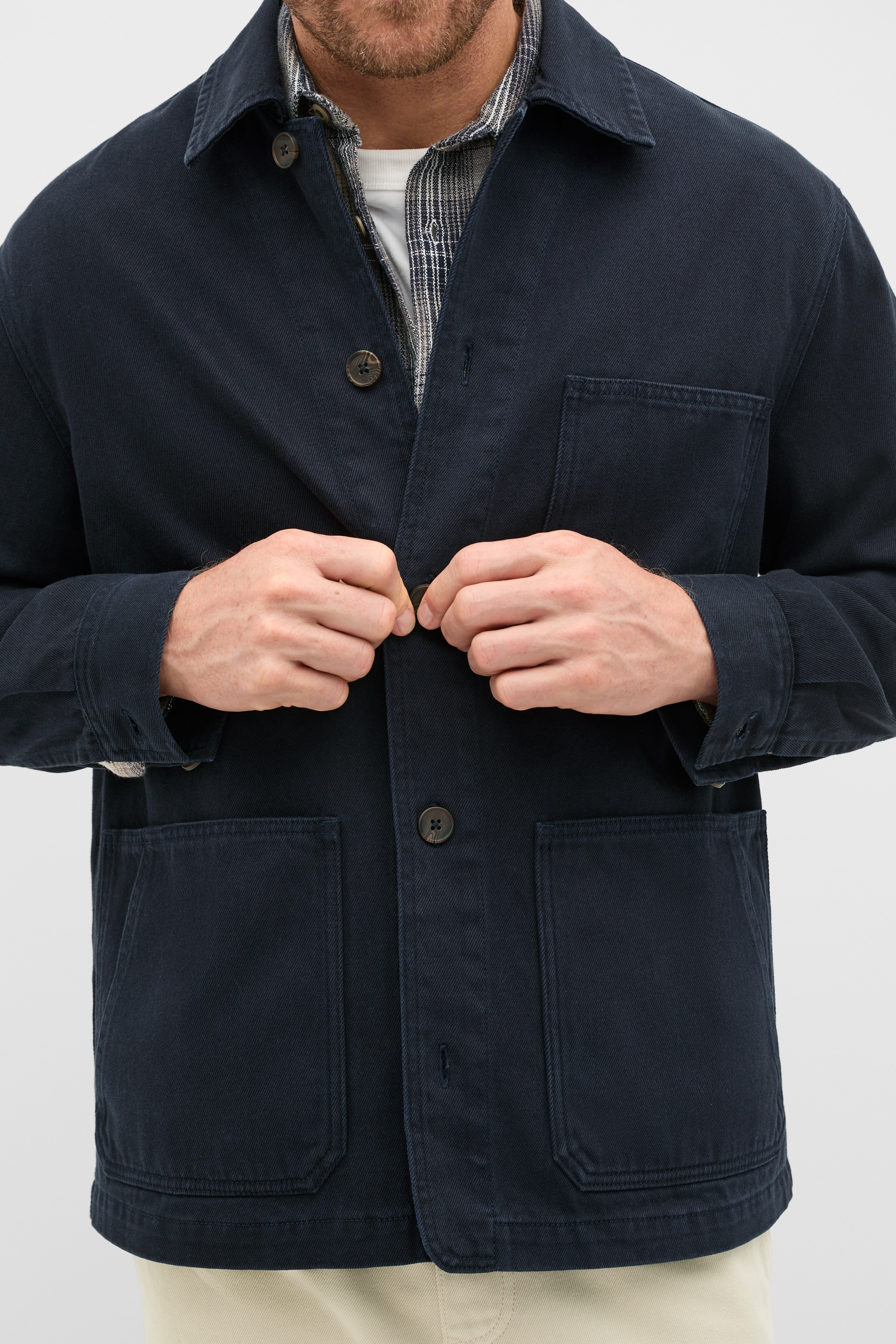 With a casual approach to utility wear, this jacket is a versatile option for his Monday to Sunday wardrobe. Crafted in premium cotton twill, it features a collar, long sleeves with button cuffs, a button placket and patch pockets. A mid-weight design, it's set to be his go-to transeasonal layer.