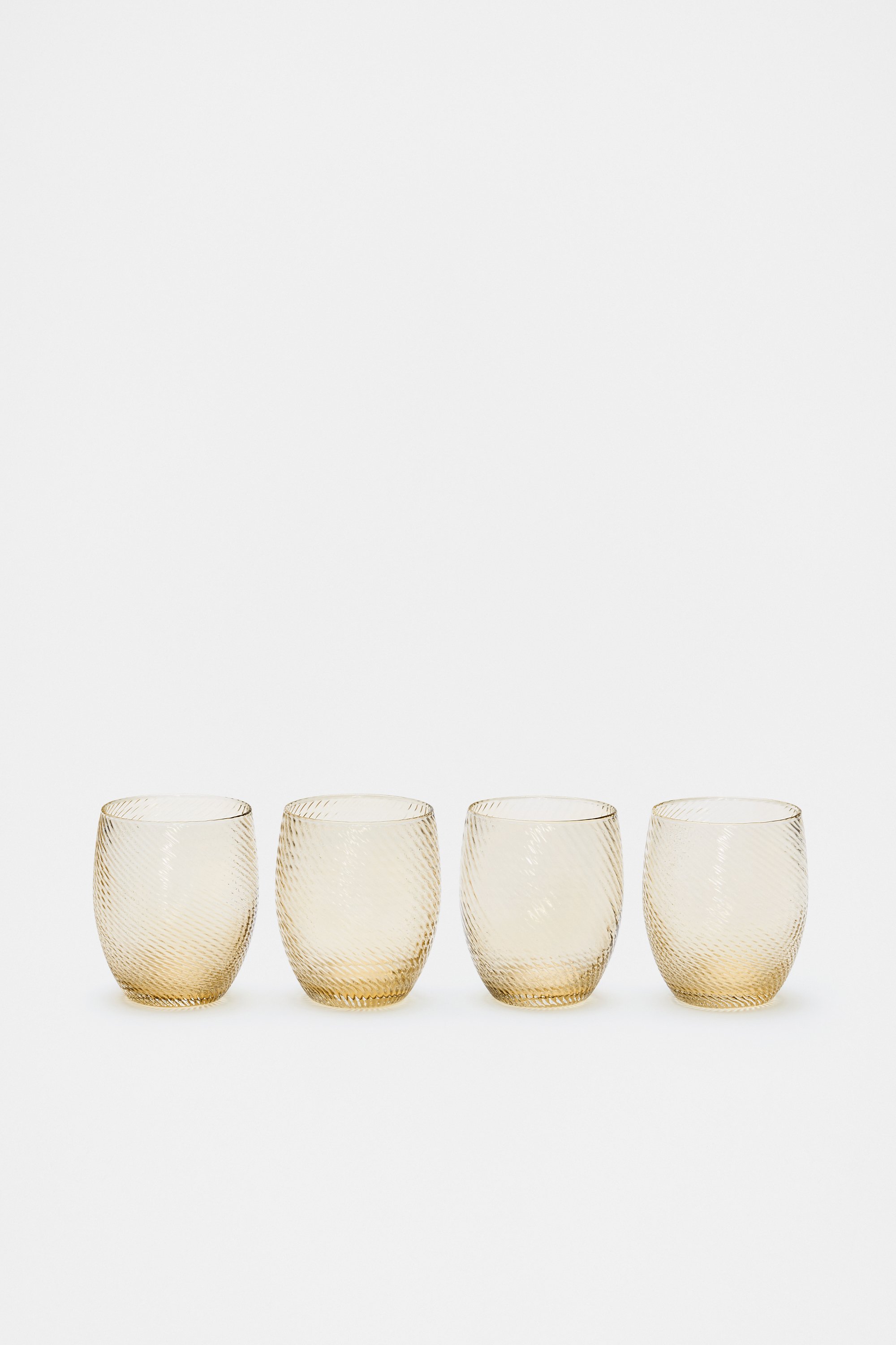 With a modern and textured shape, these drinking glasses elevate your at-home setting. Coming in a handy set of four, they're a stackable style, ready to set your table.