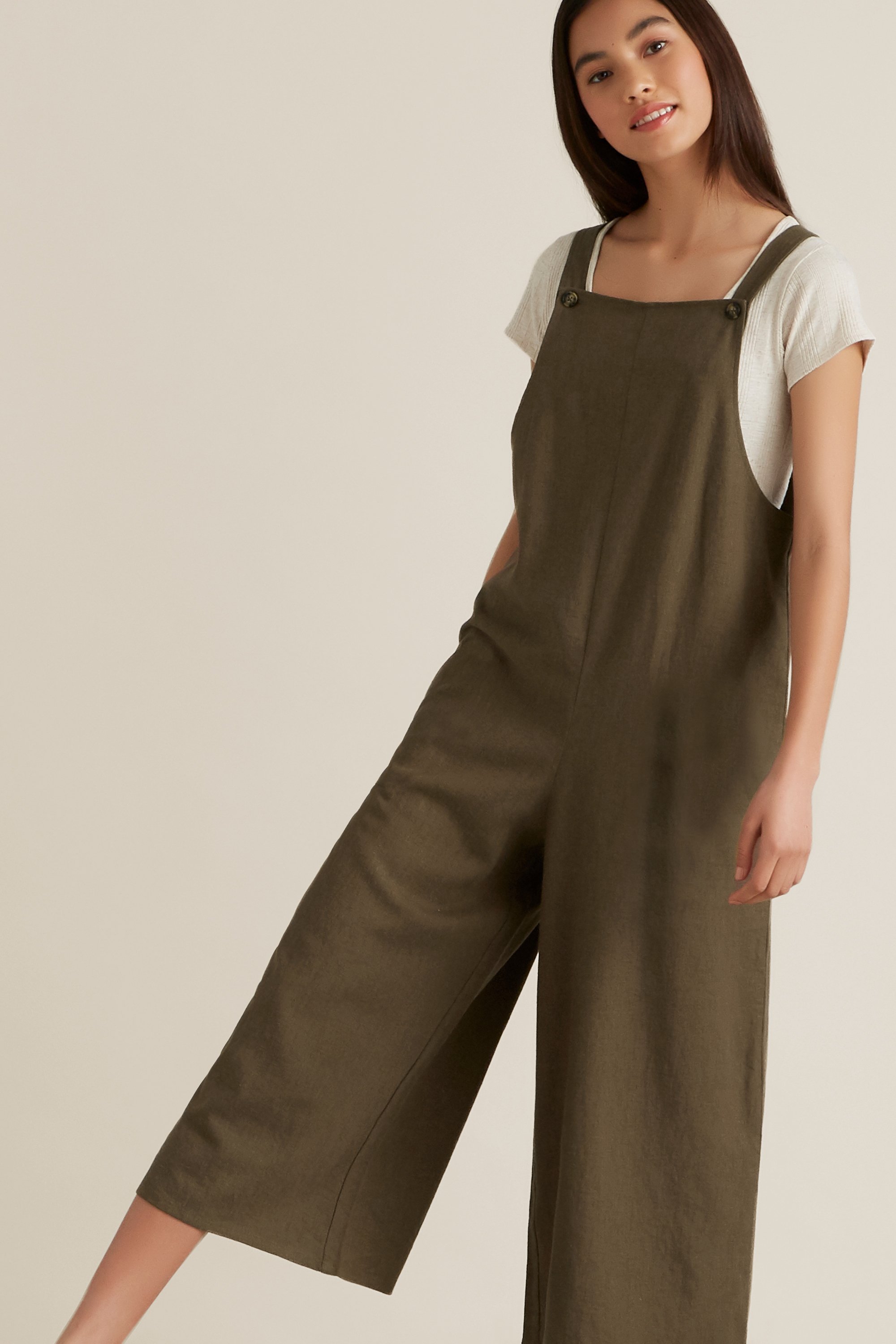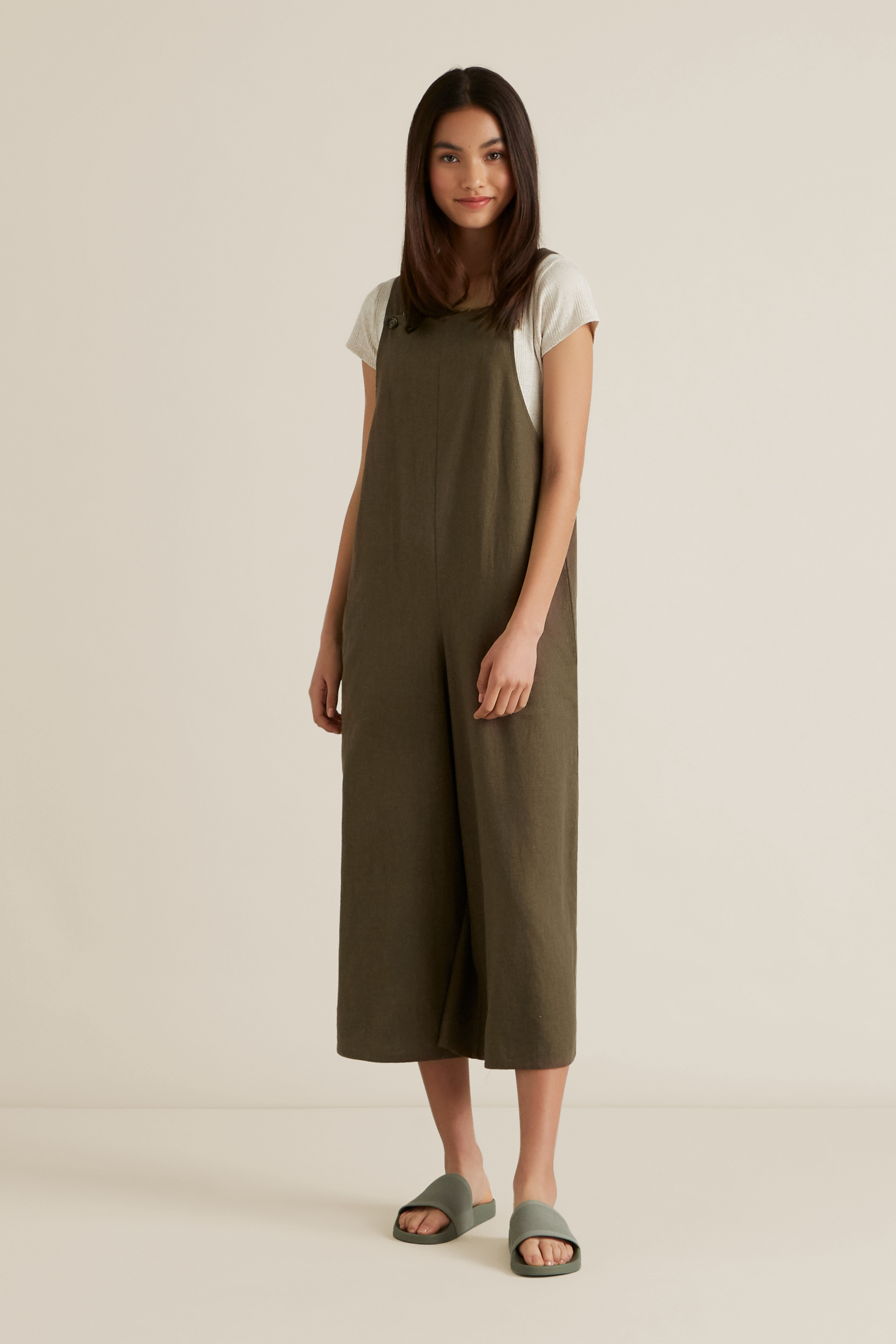 Slouchy yet chic, these Utility Dungarees are sure to be on high rotation this season. Featuring comfy shoulder straps with button snaps, it is detailed with functional pockets and a slight cropped leg. Pare back with Seed sneakers to complete this chilled-out look. Made from a woven Linen/Viscose blend, these dungarees are available in size 8 to 16. For your reference, our model is 173cm and wears a size 14. Check the label inside of the garment for care information.