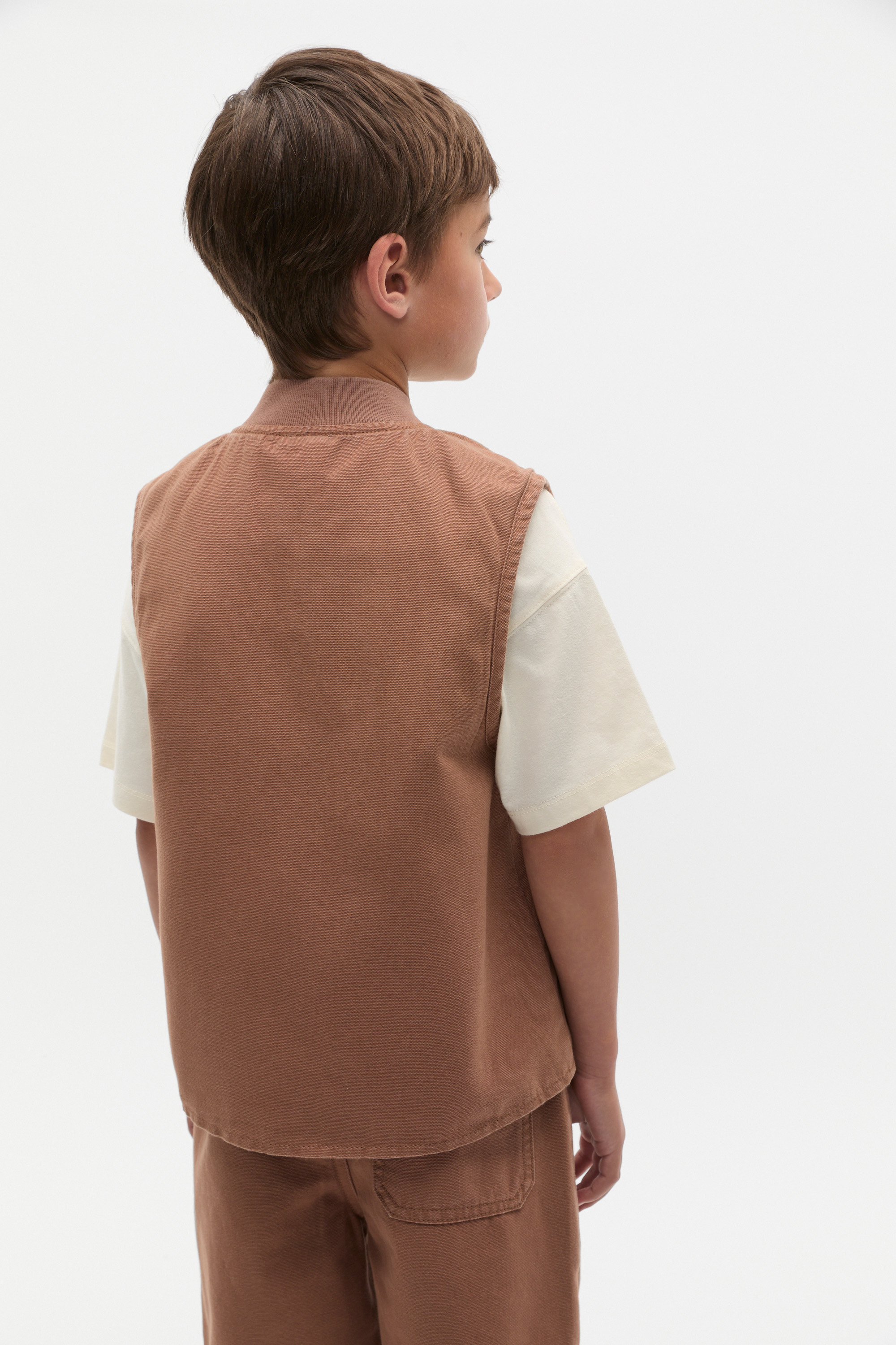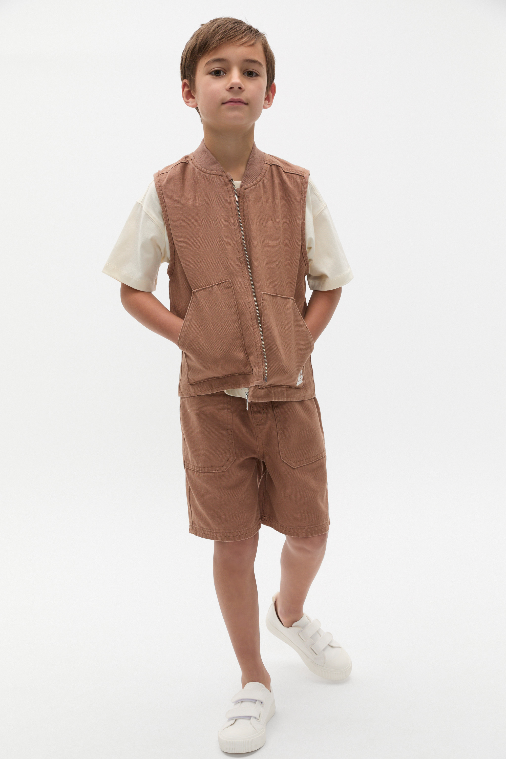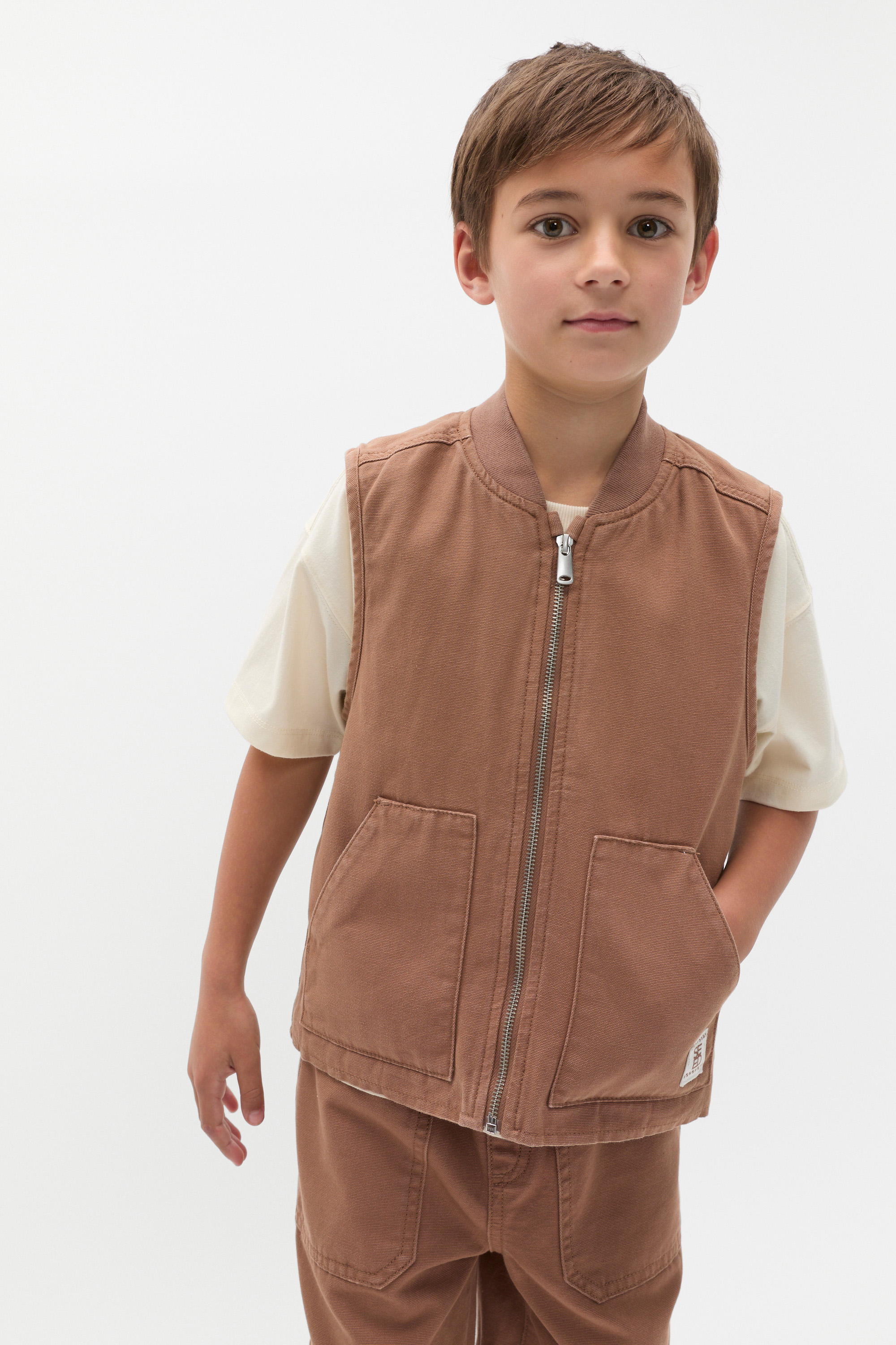 Practical and cool, this vest is a comfortable layer for the in-between seasons. Crafted with a cotton outer and a polyester lining, it features a rib collar, a zip front and two patch pockets.