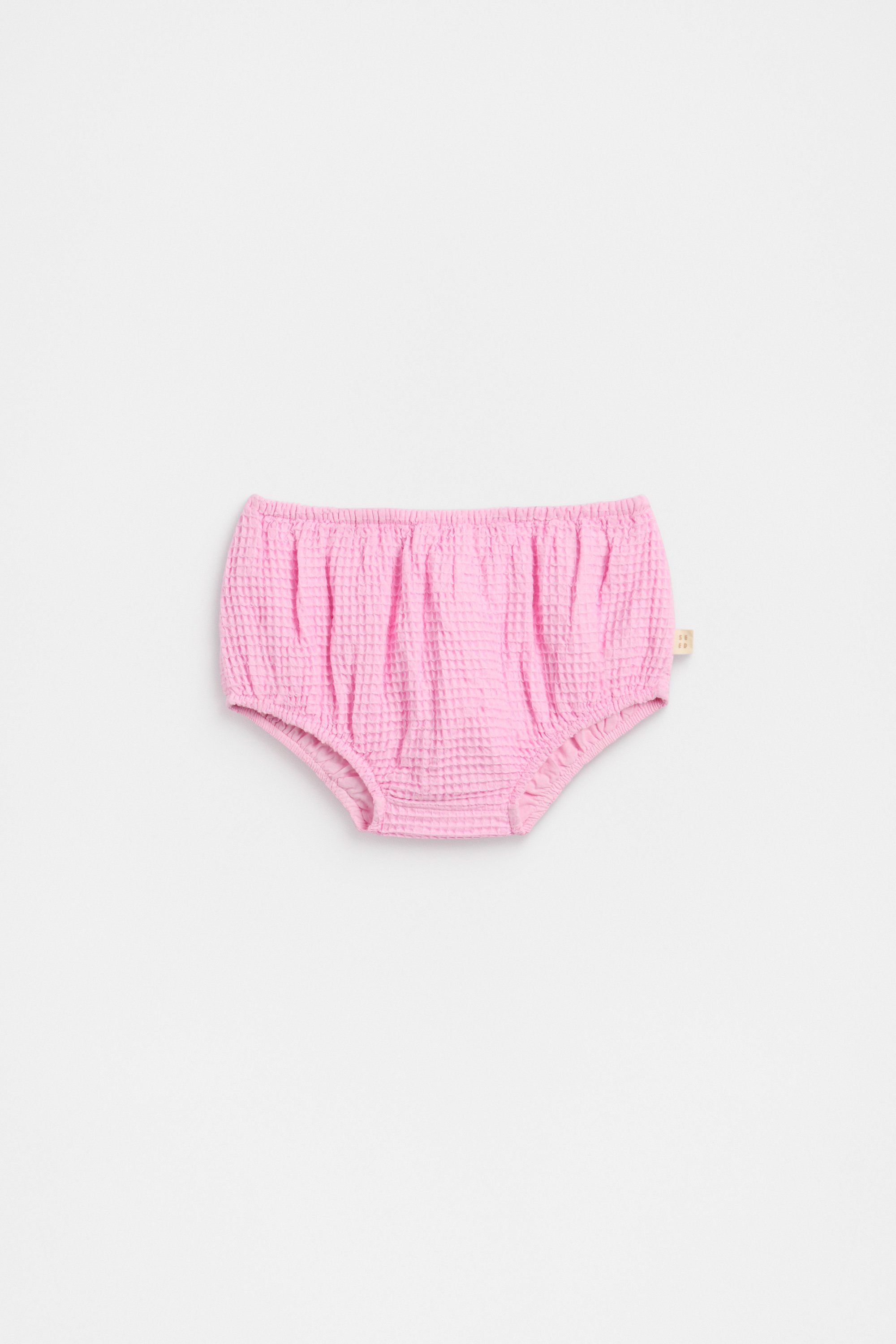 Sweetly finished in a comfortable waffle, these little bloomers are a handy pair for their summer wardrobe. Crafted in premium cotton and fully lined, they feature an elasticated waistband and elasticated leg openings.