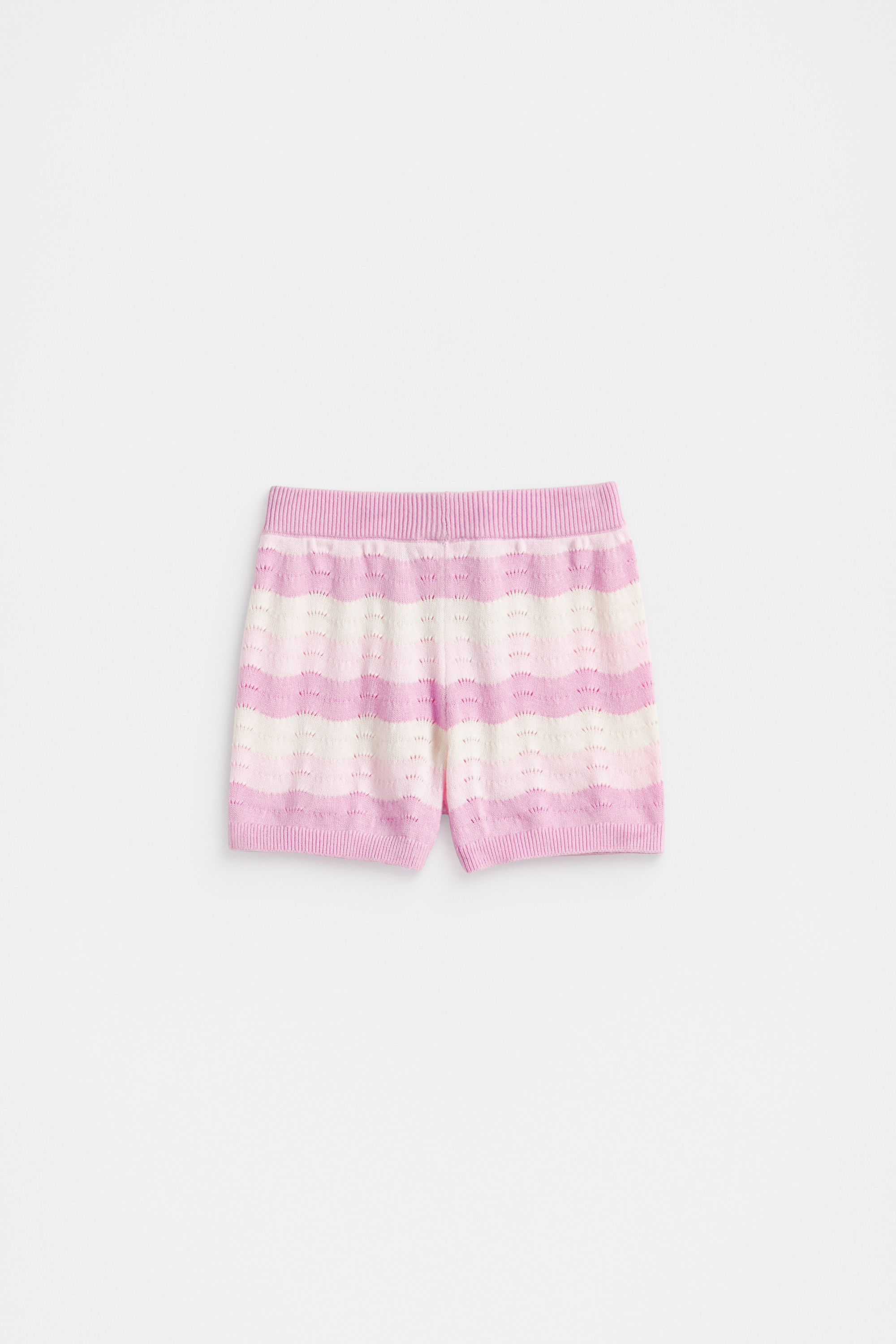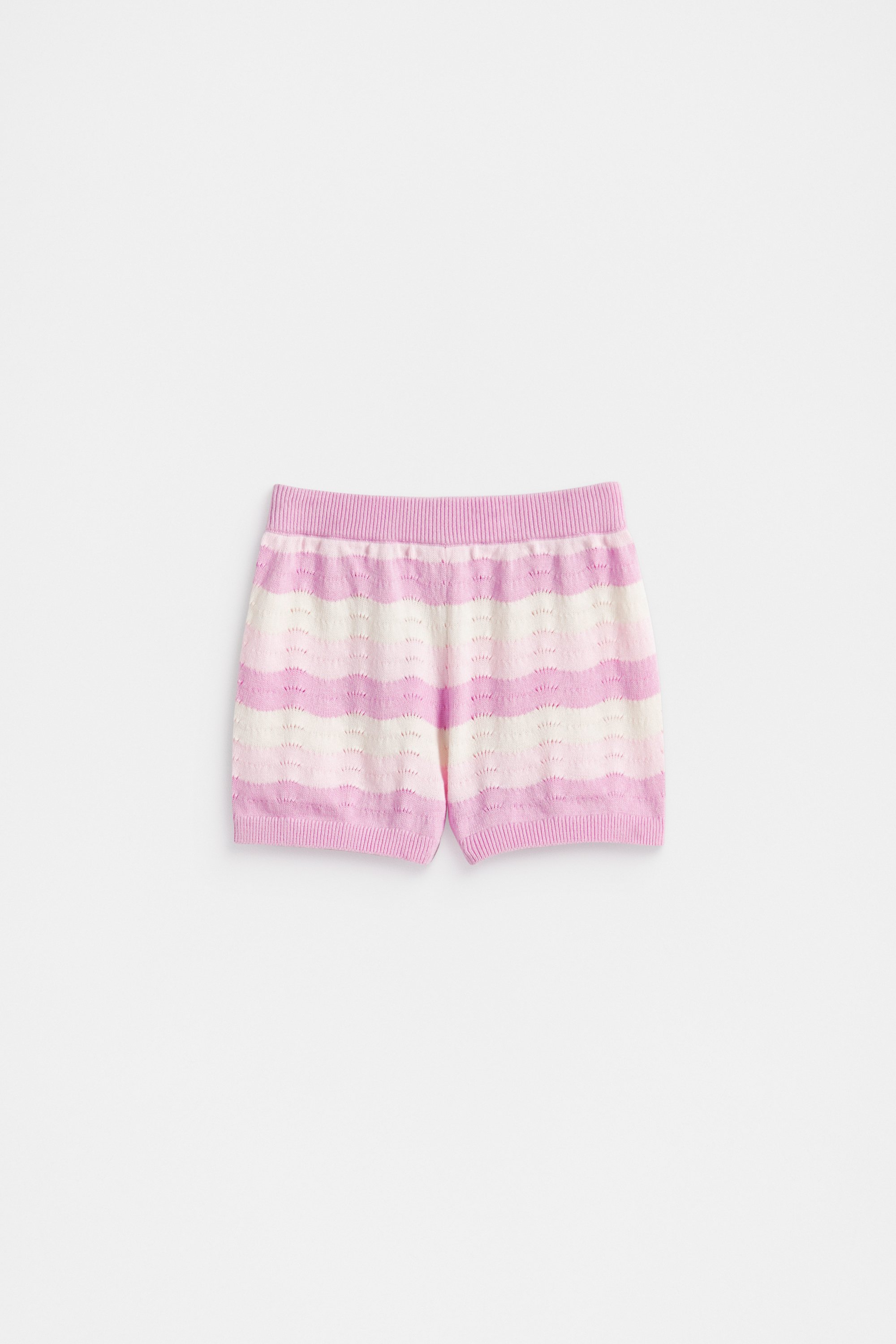 The sweetest little option, these knit shorts are crafted from breathable cotton with an elasticated waistband. They feature a wavy pattern with a textured knit, and can be paired with the matching jumper for a coordinated set.