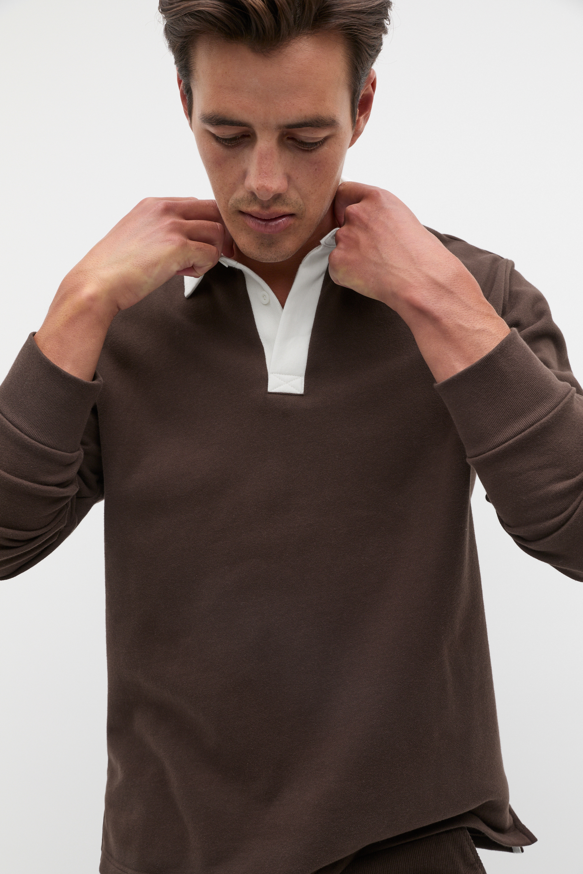 Ready for the cool change, this rugby jumper is a smart update on a sporting favourite. Crafted in premium cotton, it features a contrast collar, long sleeves with elasticated cuffs and a relaxed fit.