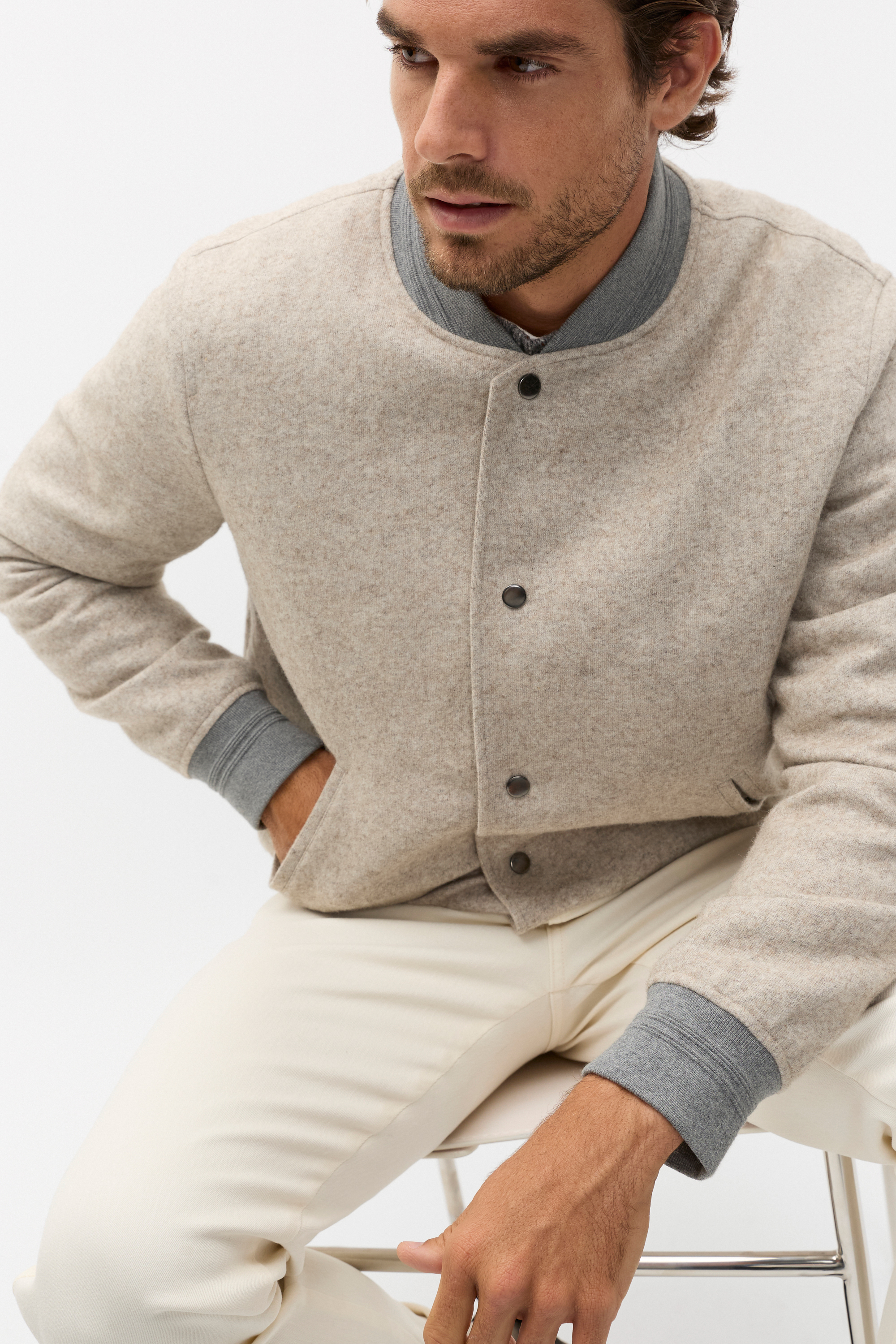 Wool Blend Bomber Jacket  Cashew Marle  hi-res Wool Blend Bomber Jacket  Cashew Marle  hi-res Wool Blend Bomber Jacket  Cashew Marle  hi-res Wool Blend Bomber Jacket  Cashew Marle  hi-res