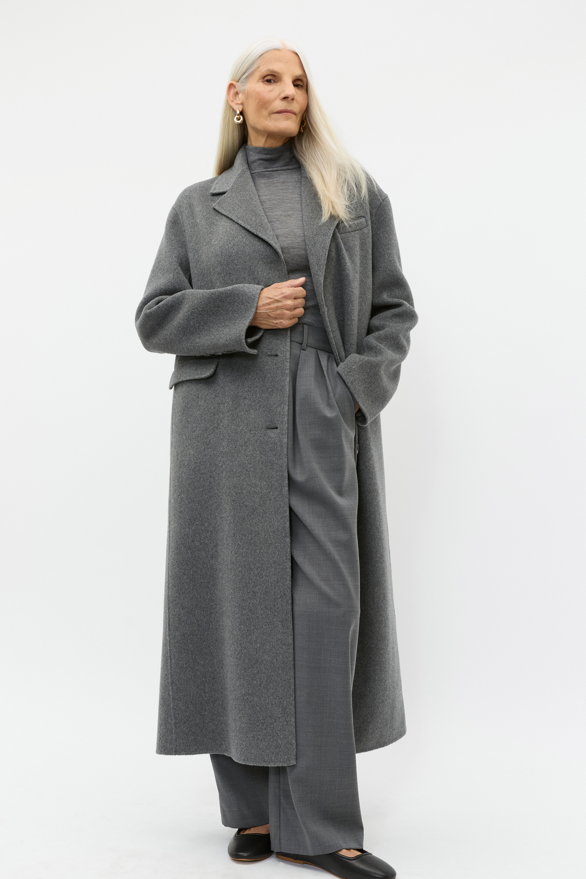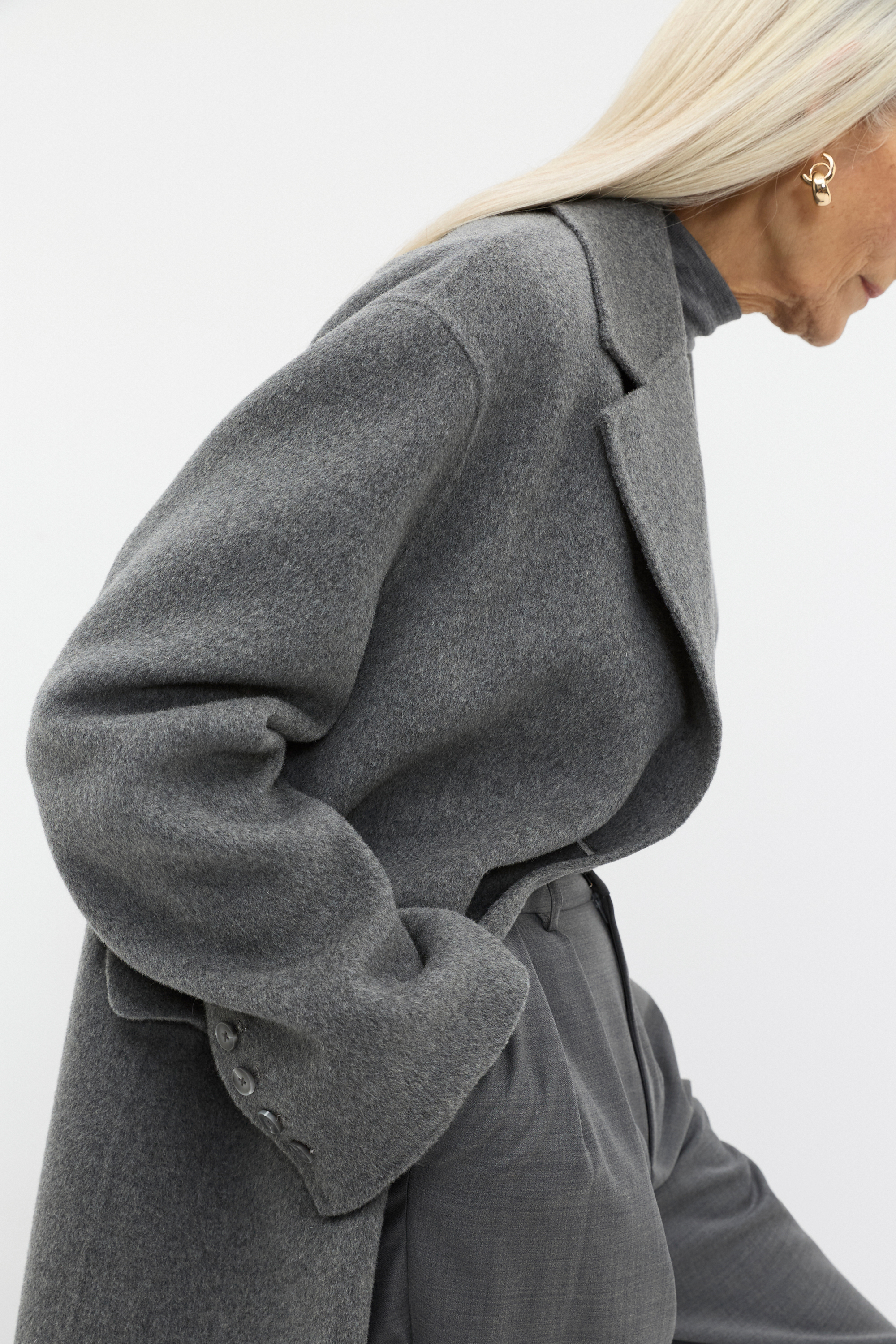 Wool Blend Boyfriend Coat  Charcoal Grey Marle  hi-res