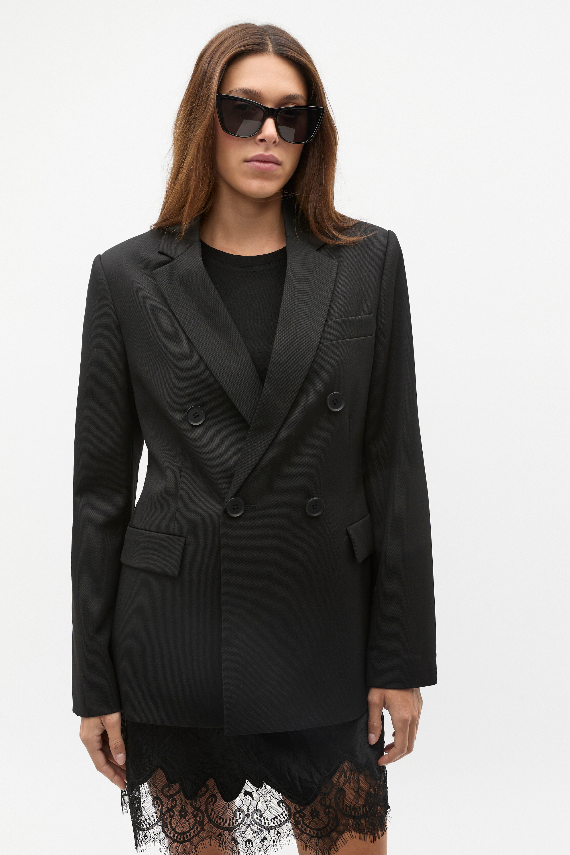 Update your workwear wardrobe with this elegantly crafted blazer. Classic in all its stylings, it features a double-breasted design with a notched lapel, jacket pockets and an outer breast pocket. This blazer is a fitted style with a longline cut for a refined, tailored finish.
