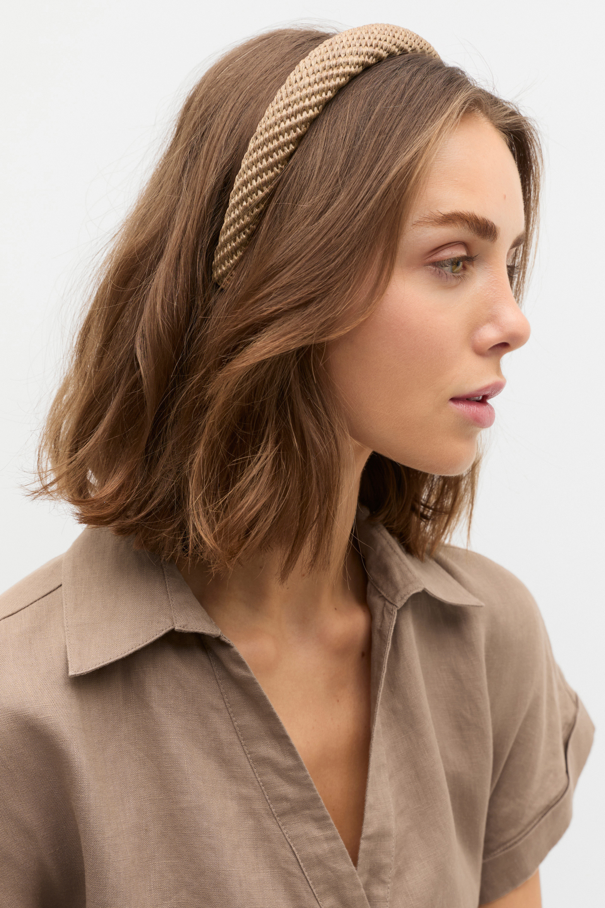 Finished in a chic and textured raffia, this woven Alice headband is a modern option to style your hair.