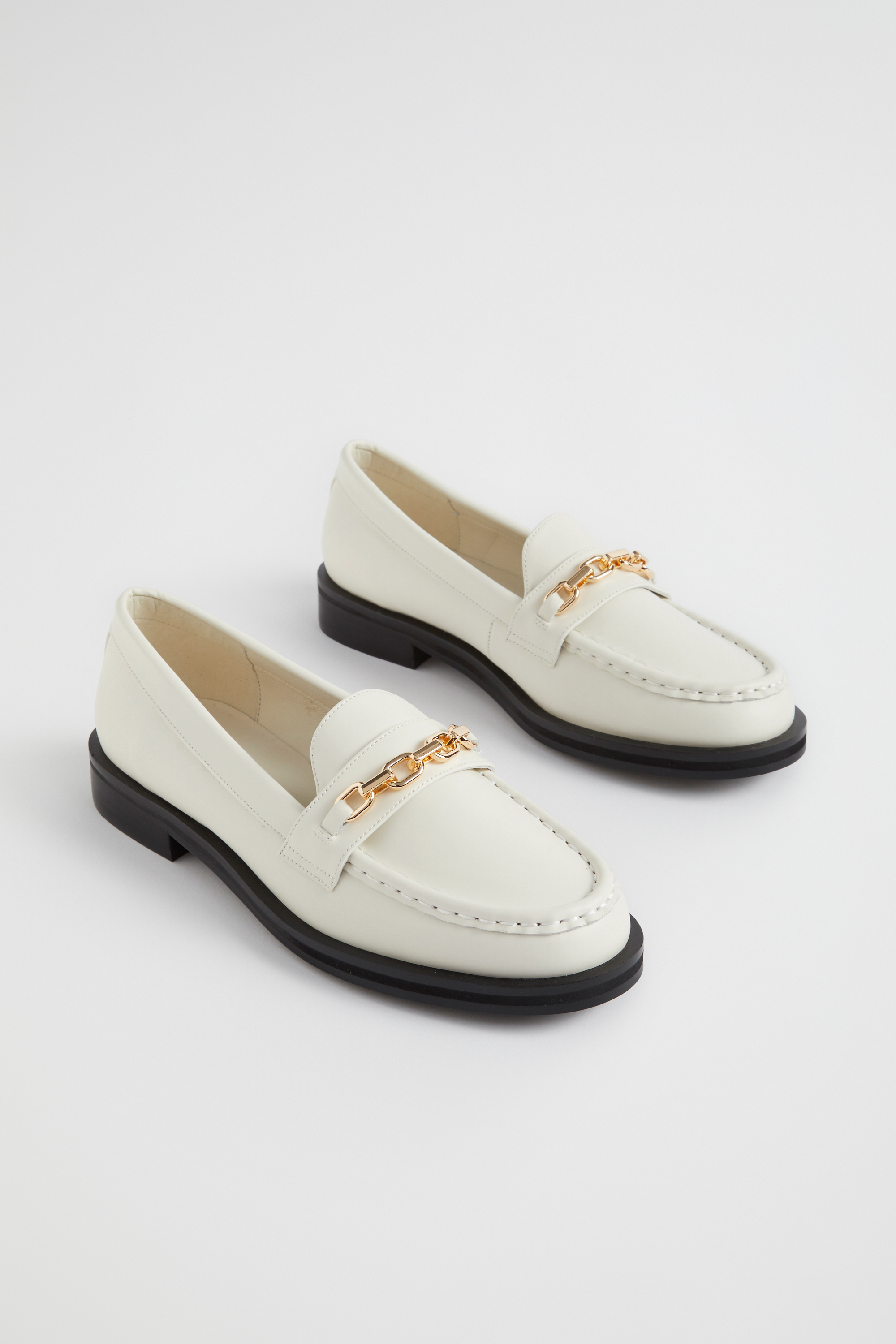 Easy to style and crafted from leather, these loafers are set to be your next staple shoe. They feature a metallic chain detail and a chunky contrasting sole.