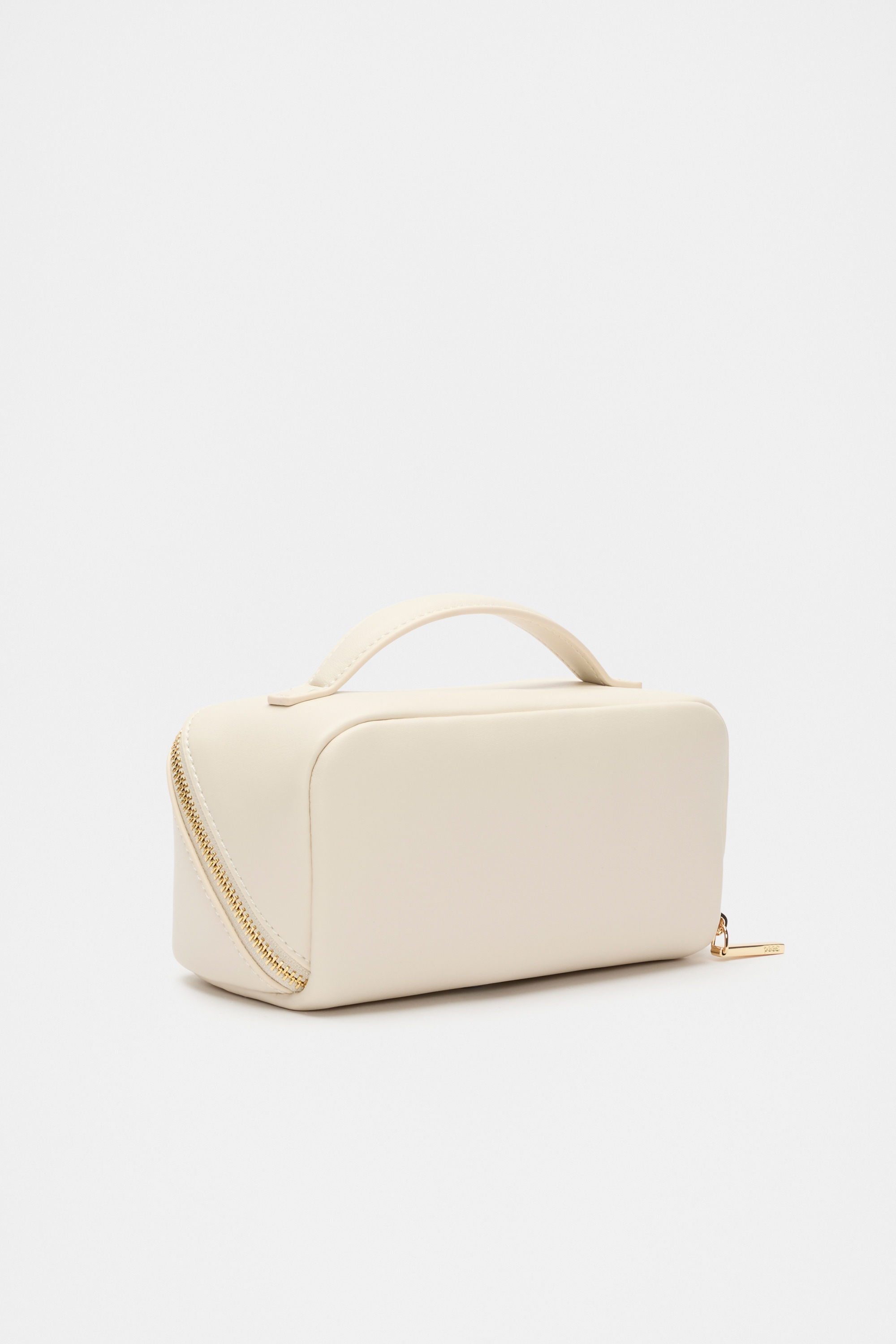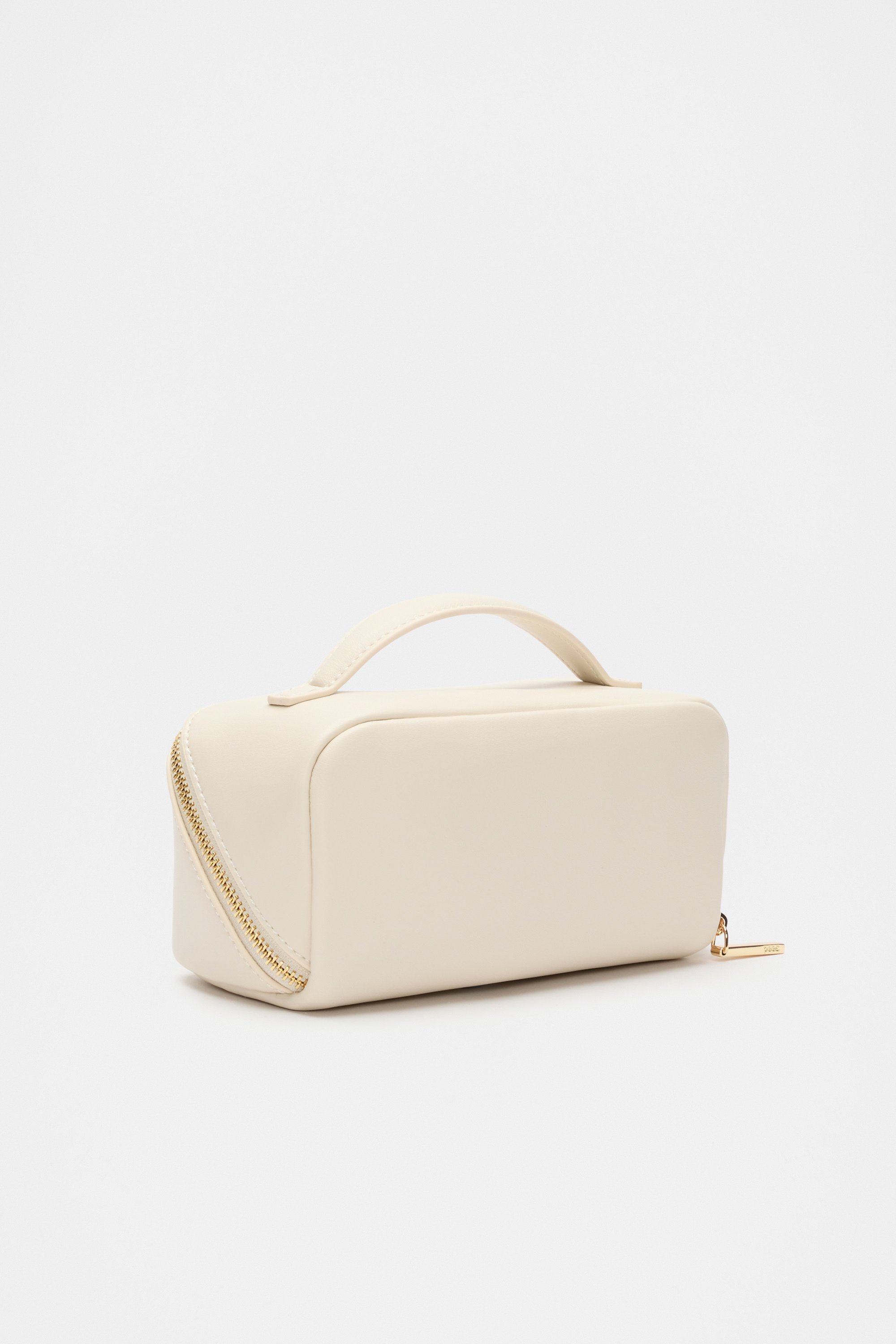 Perfect for carrying the essentials, this cosmetic case features a top handle and a statement angled zip closure. Pair with the matching larger case for the ideal travelling set, or for the perfect gift.